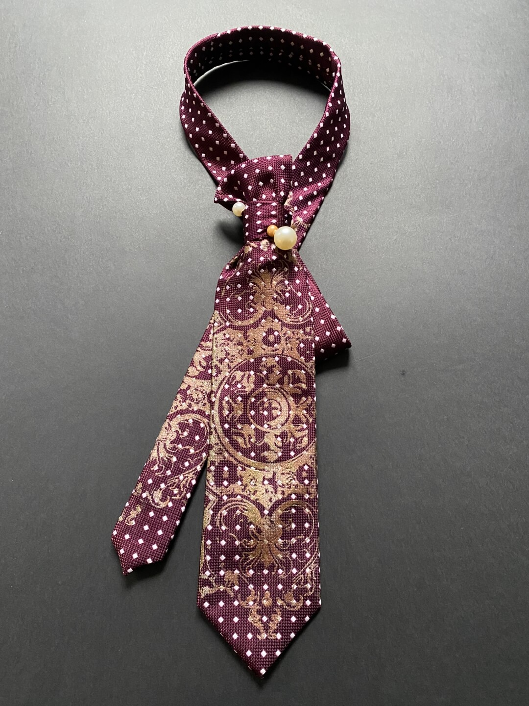 Naše ženske kravate su pravi “game changer” za tvoj stil. Spoj su retro šarma i modernog dizajna. Svaka kravata je unikat, ručno redizajniran (upcycled) i dorađen kako bi klasičnom muškom dodatku dao potpuno novi, ženstveni identitet. Ukrašene su bogatim printom čipke u kontrastnoj boji i elegantnim broševima ili iglama s biserima koji im daju “ladylike” moment. Budući da su ručno zašivene i kopčaju se diskretnim drukerima, tvoj jedini zadatak je odabrati onu koja najbolje priča tvoju priču.
