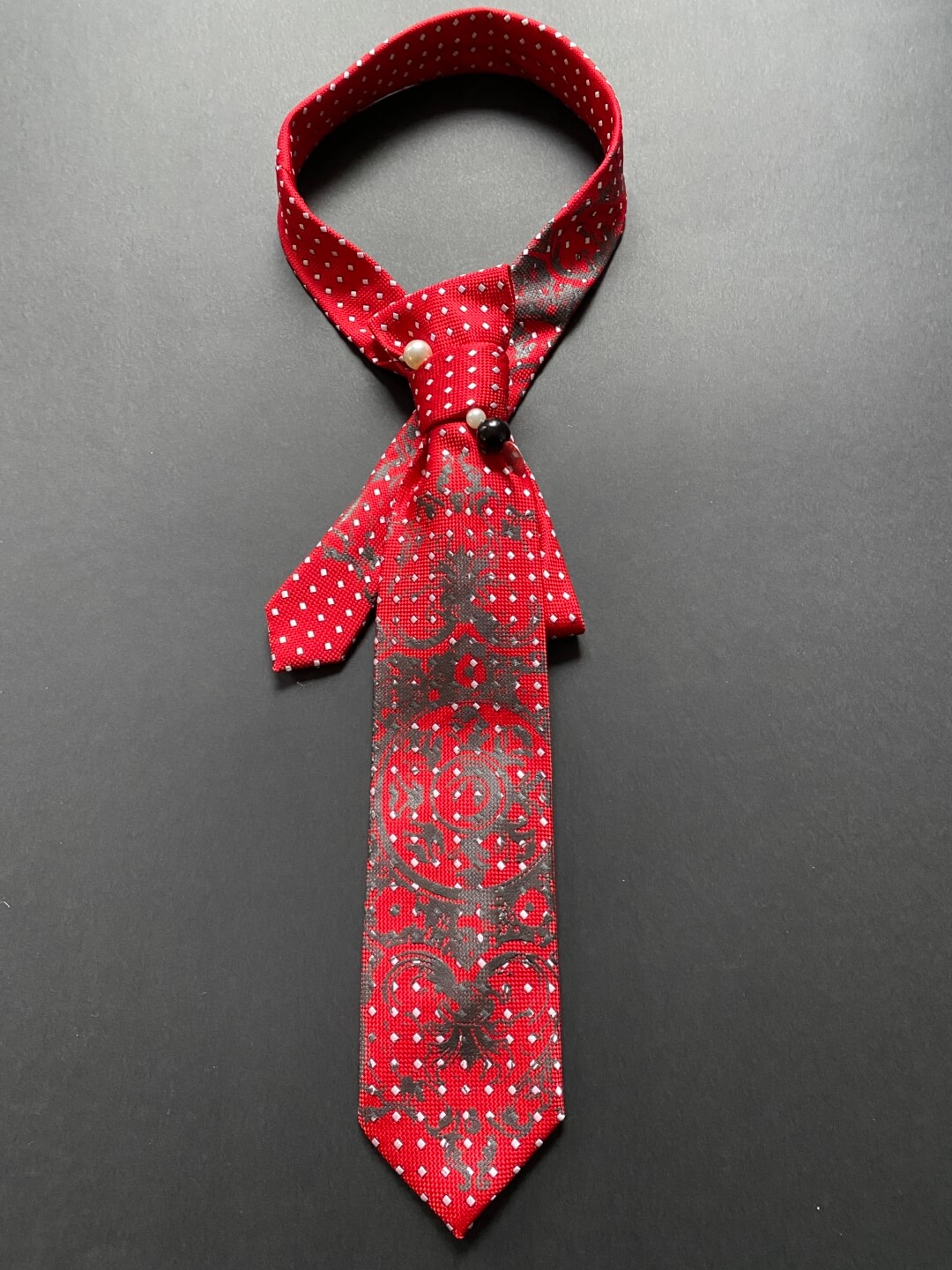 Naše ženske kravate su pravi “game changer” za tvoj stil. Spoj su retro šarma i modernog dizajna. Svaka kravata je unikat, ručno redizajniran (upcycled) i dorađen kako bi klasičnom muškom dodatku dao potpuno novi, ženstveni identitet. Ukrašene su bogatim printom čipke u kontrastnoj boji i elegantnim broševima ili iglama s biserima koji im daju “ladylike” moment. Budući da su ručno zašivene i kopčaju se diskretnim drukerima, tvoj jedini zadatak je odabrati onu koja najbolje priča tvoju priču.