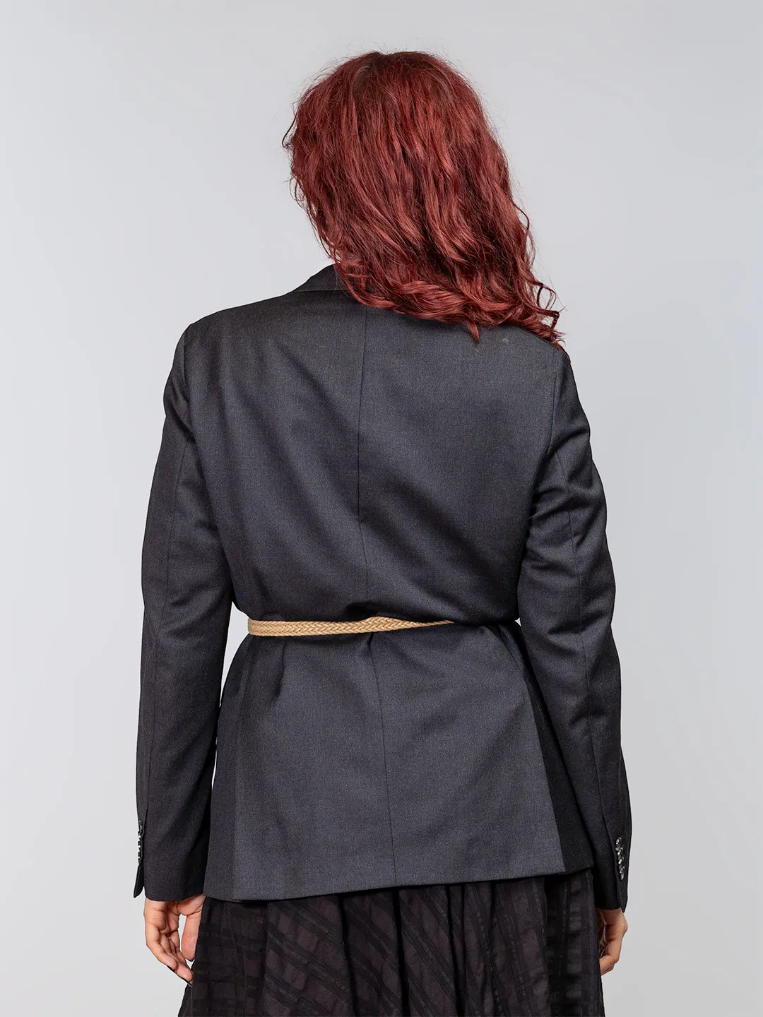 Redizajnirani vintage sako koji spaja bezvremenski klasični kroj i ženstvenu siluetu. Ukrašen dekorativnim gumbima, prišivkom na reveru i remenom koji naglašava struk, ovaj unikatni komad donosi dozu šarma i individualnosti u svaki stil. Idealan je za one koji žele istaknuti osobnost kroz odvažnu, eklektičnu modu.