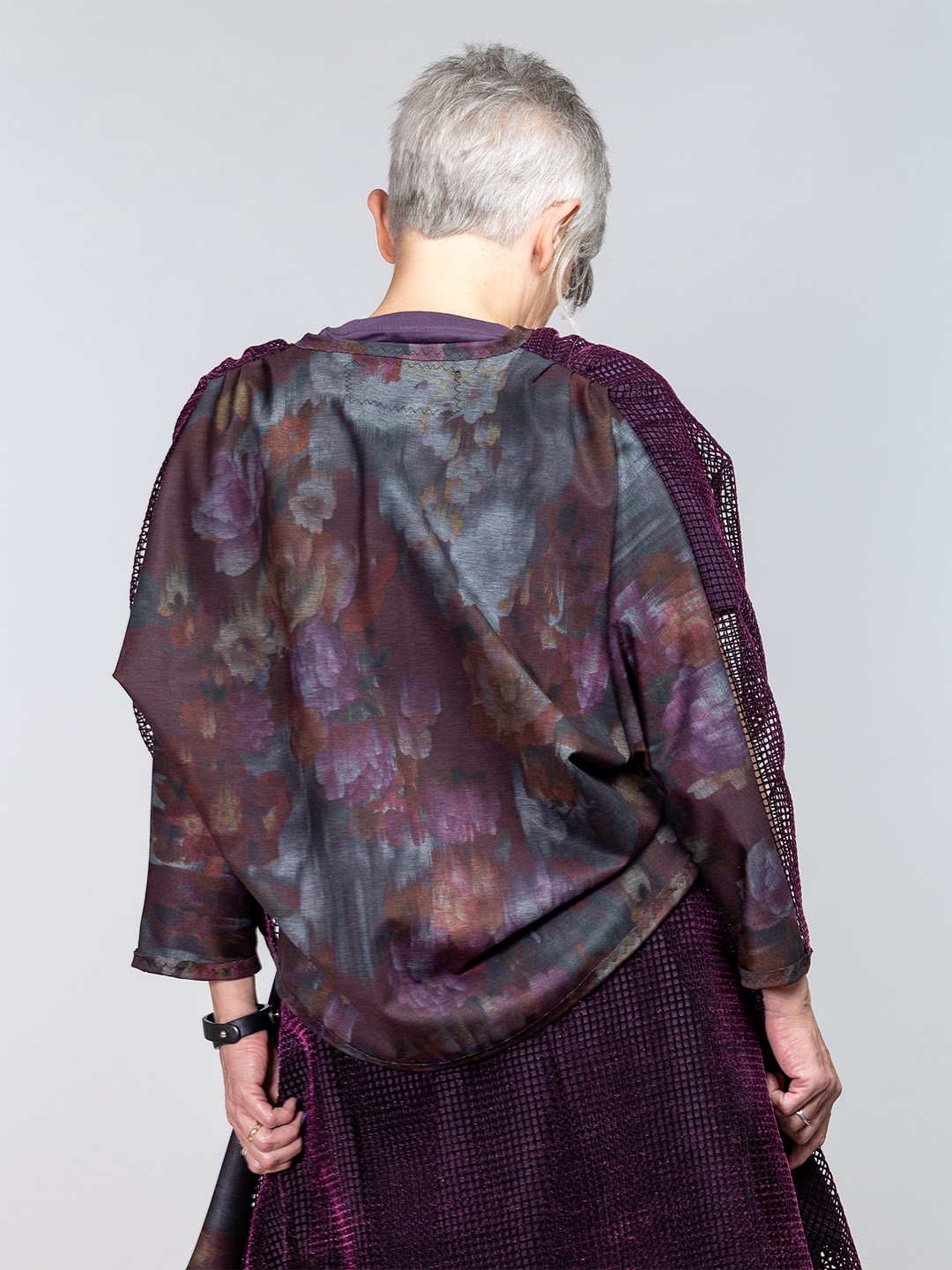 Ljubičasta mrežasta jakna kimono kroja