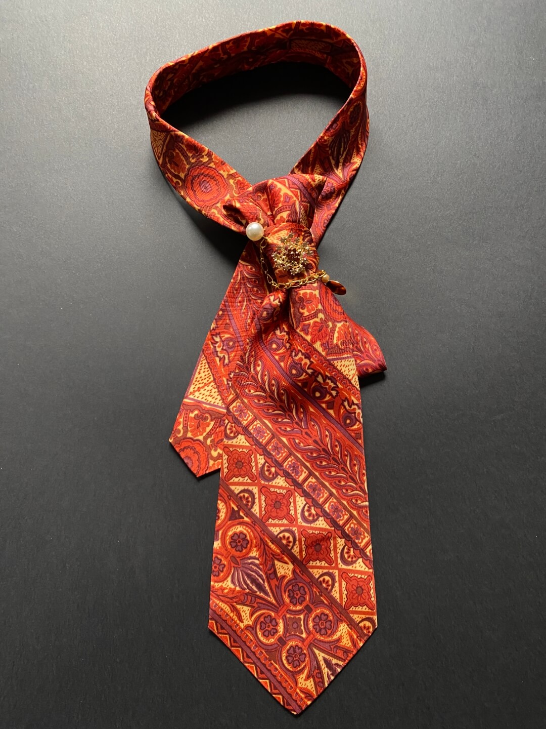 U moru modernog dizajna, ponekad se najbolje rješenje krije u prošlosti. Kolekcija „Old Soul” donosi pažljivo birane retro ili vintage kravate koje su preživjele test vremena. Svaka od njih je unikatni primjerak koji nosi estetiku nekih drugih desetljeća, spremna da postane ključni dio tvog modernog outfita. Svaki komad je ručno redizajniran (upcycled) i dorađen kako bi klasičnom muškom dodatku dao potpuno novi, ženstveni identitet. Ukrašene su elegantnim broševima ili iglama s biserima koji im daju “ladylike” moment. Budući da su ručno zašivene i kopčaju se diskretnim drukerima, tvoj jedini zadatak je odabrati onu koja najbolje priča tvoju priču.