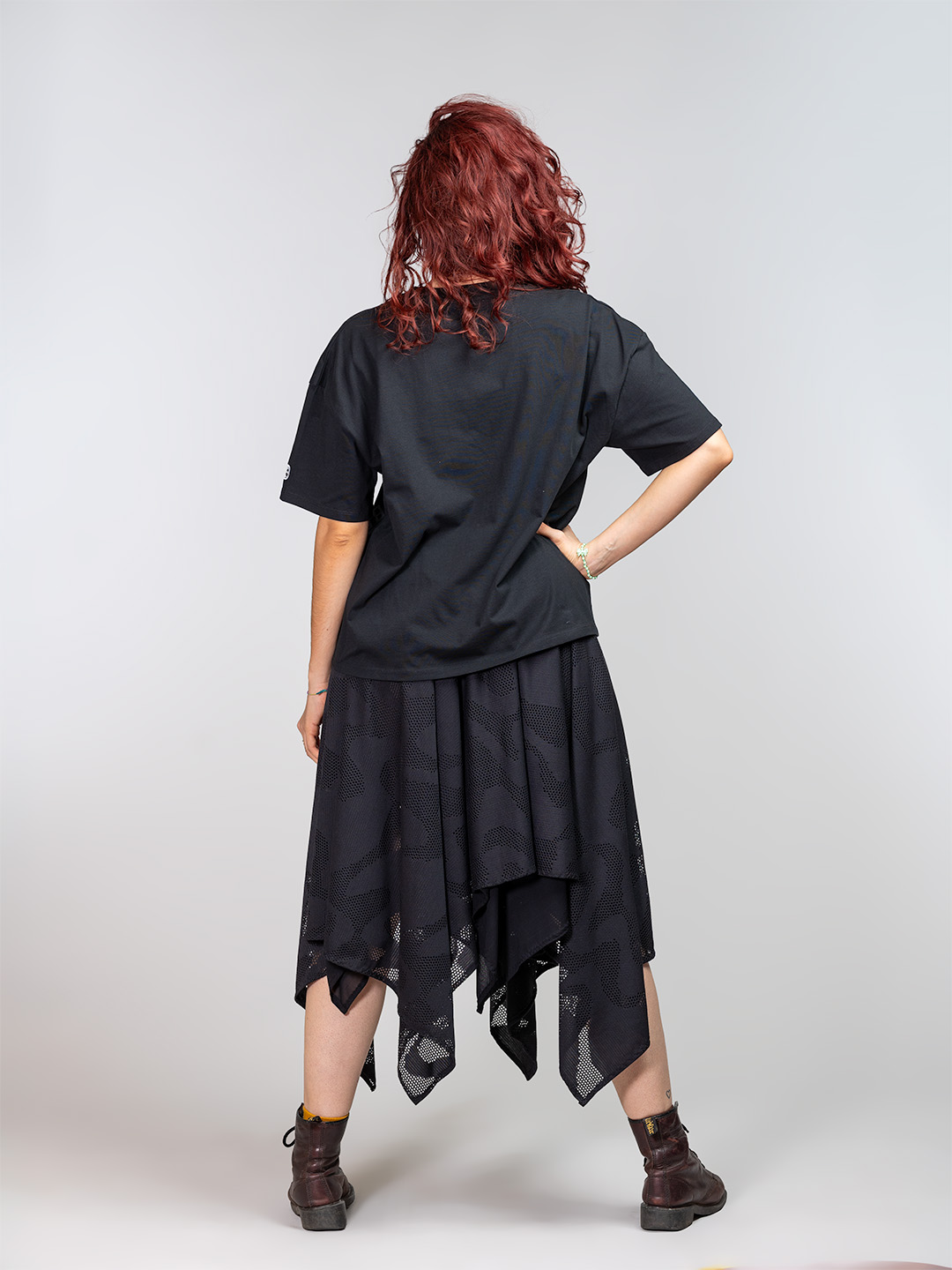 Ova crna majica je tvoja uniforma za gradski asfalt. Stvorena je za one koji cijene čiste linije i suptilan, ali snažan potpis. S vertikalnim “La Bestia” natpisom postavljenim asimetrično na bočnoj strani, ova majica bježi od klasičnih šablona. Print je ovdje poput sjene – prisutan, ali diskretan. Boxy kroj i spuštena ramena daju joj taj opušteni, effortless izgled koji se savršeno stapa s urbanom džunglom. Krojen da bude komotan, ali ne i vrećast, savršen je balans između udobnosti i stila. Mali reflektirajući logo na rukavu kao pečat kvalitete i autentičnosti i gumbić prišiven na kraju printa koji svaku majicu čini unikatnom.