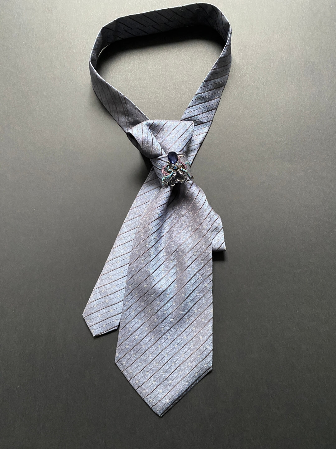U moru modernog dizajna, ponekad se najbolje rješenje krije u prošlosti. Kolekcija „Old Soul” donosi pažljivo birane retro ili vintage kravate koje su preživjele test vremena. Svaka od njih je unikatni primjerak koji nosi estetiku nekih drugih desetljeća, spremna da postane ključni dio tvog modernog outfita. Svaki komad je ručno redizajniran (upcycled) i dorađen kako bi klasičnom muškom dodatku dao potpuno novi, ženstveni identitet. Ukrašene su elegantnim broševima ili iglama s biserima koji im daju “ladylike” moment. Budući da su ručno zašivene i kopčaju se diskretnim drukerima, tvoj jedini zadatak je odabrati onu koja najbolje priča tvoju priču.
