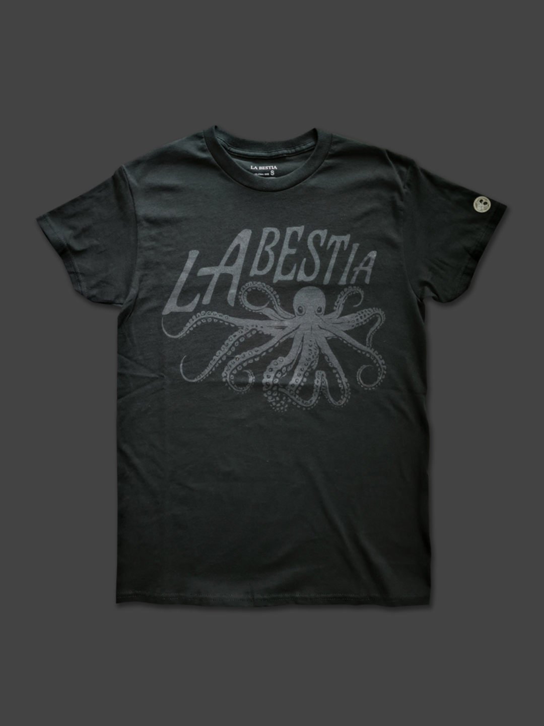 Crna majica sa sivim tiskom hobotnice u kombinaciji s upečatljivim “La Bestia” natpisom idealan je izbor za ljubitelje alternativne mode i urbanog dizajna. Izrađena je od mekanog i kvalitetnog pamuka koji osigurava maksimalnu udobnost tijekom cijelog dana. Prepoznatljivi okrugli logotip na rukavu izrađen od reflektirajuće folije daje dodatnu notu autentičnosti. Bilo da se spremate za koncert, opušteni izlazak u grad ili tražite savršen poklon za ljubitelje morske tematike s “pomakom”, La Bestia Octopus t-shirt je idealan izbor. Dizajner ovog printa je Filip Miletić.