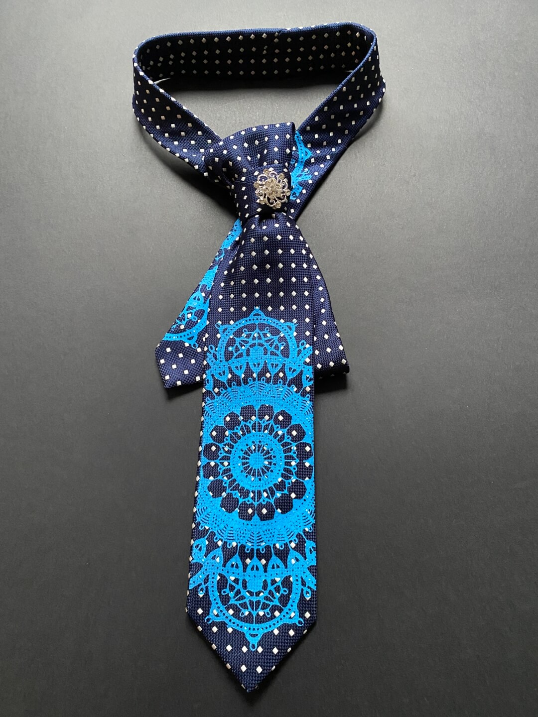 Naše ženske kravate su pravi “game changer” za tvoj stil. Spoj su retro šarma i modernog dizajna. Svaka kravata je unikat, ručno redizajniran (upcycled) i dorađen kako bi klasičnom muškom dodatku dao potpuno novi, ženstveni identitet. Ukrašene su bogatim printom čipke u kontrastnoj boji i elegantnim broševima ili iglama s biserima koji im daju “ladylike” moment. Budući da su ručno zašivene i kopčaju se diskretnim drukerima, tvoj jedini zadatak je odabrati onu koja najbolje priča tvoju priču.