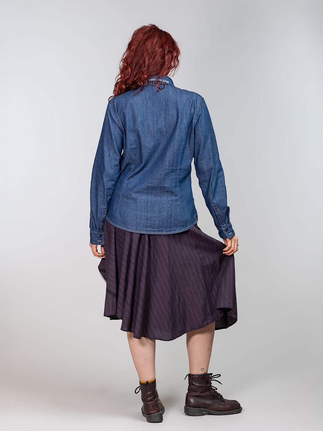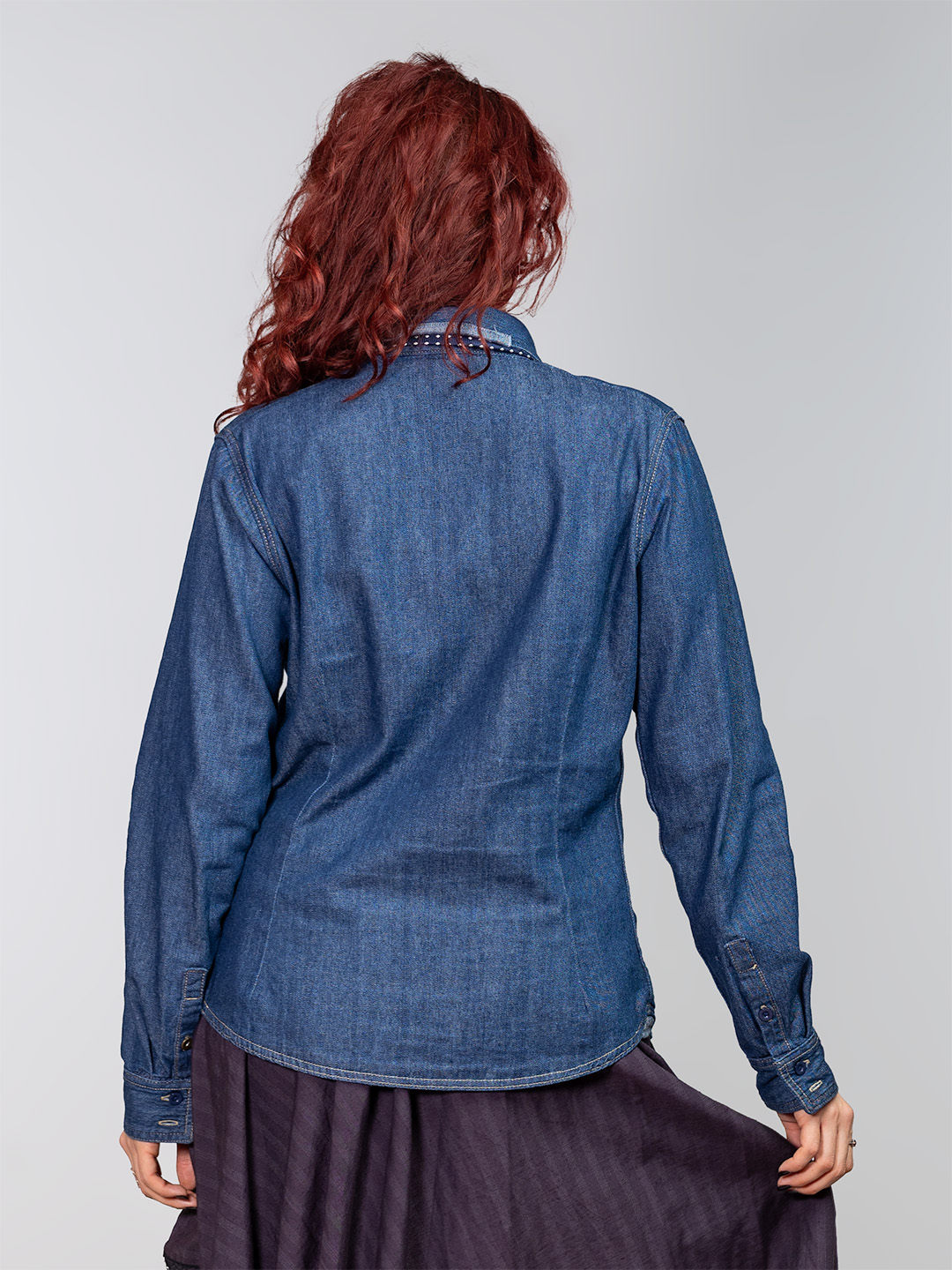 Košulja od tamno plavog jeansa s ljubičastim tiskom