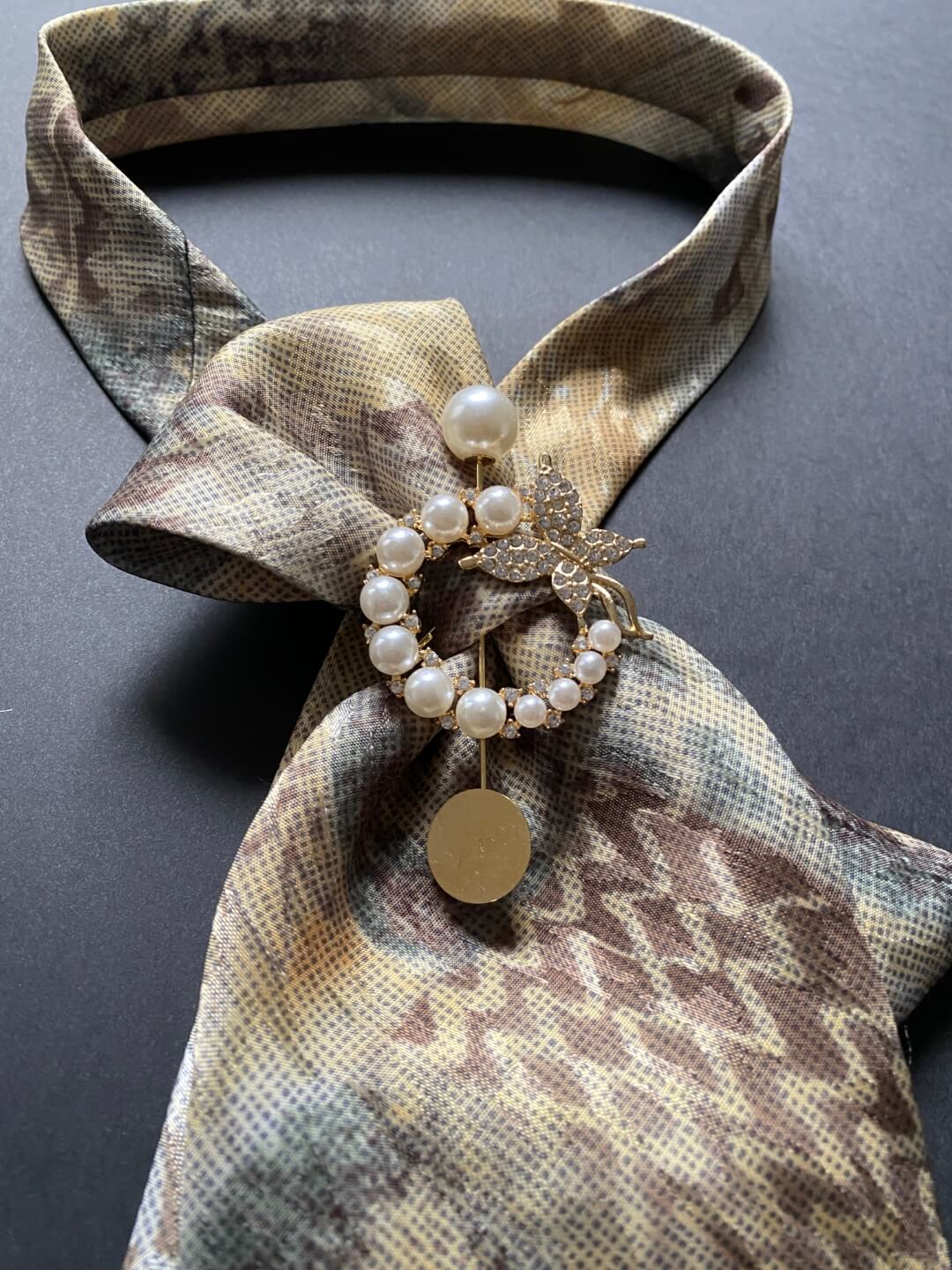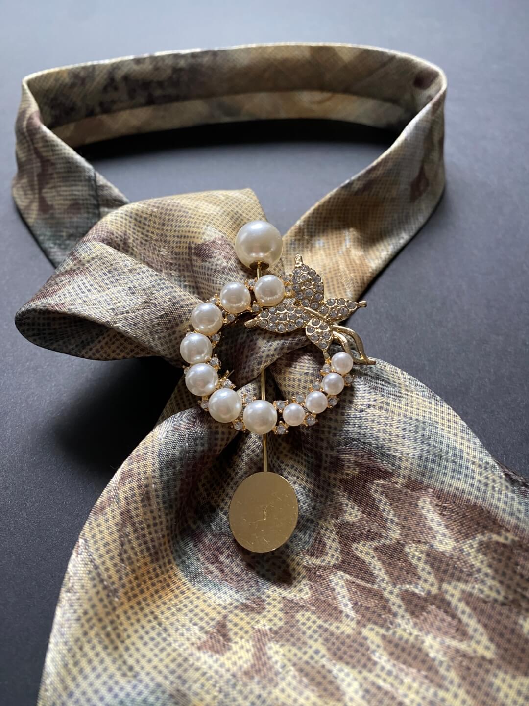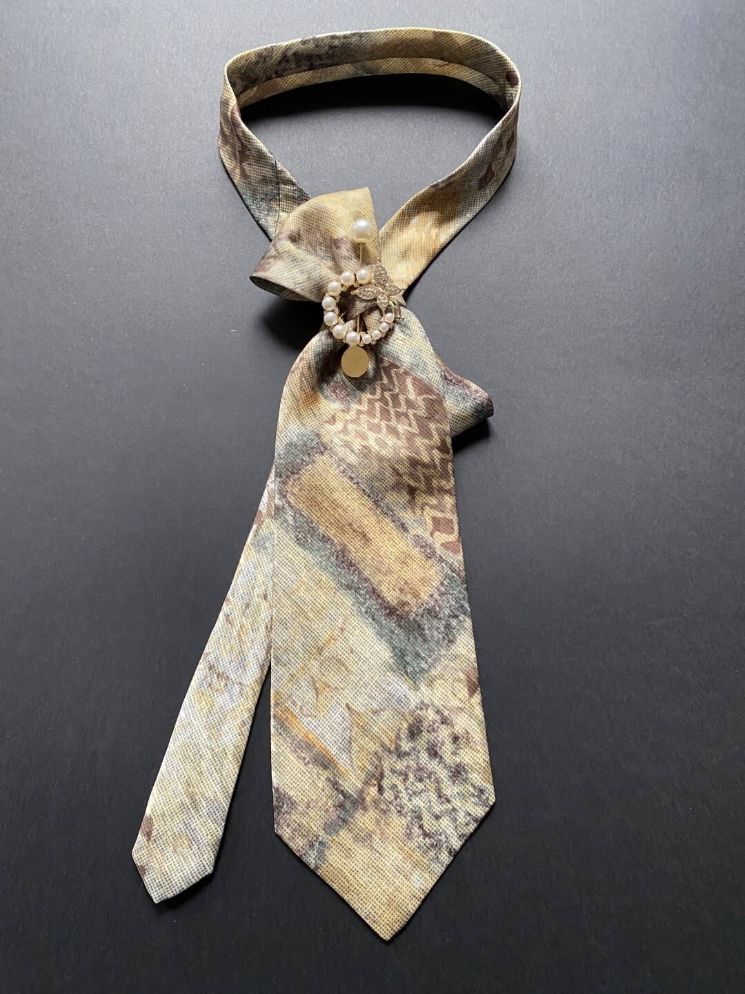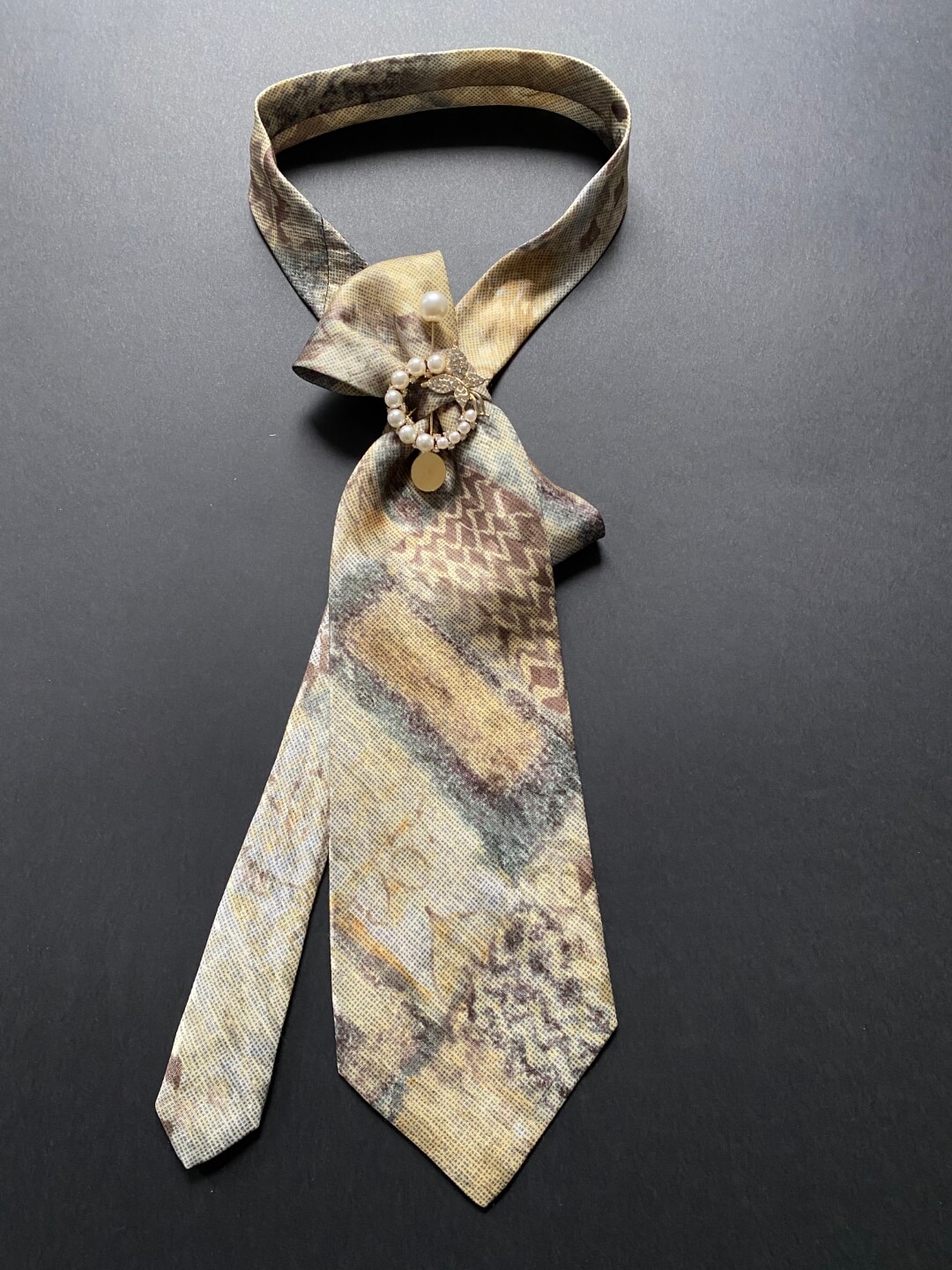 Ženska kravata u bež nijansama s brošem s biserima